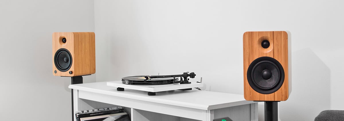 Toate boxele active din lista noastră includ un preamplificator de phono integrat, deci pick-up-ul tău nu va avea nevoie de unul, însă, dacă are, va trebui să îl ocolești fie pe pick-up, fie pe boxă atunci când le conectezi. Dacă intenționezi să achiziționezi o pereche de boxe care nu are preamplificator de phono integrat, va trebui să te asiguri că pick-up-ul tău are unul integrat sau să planifici achiziționarea unui preamplificator de phono extern pentru a-l adăuga la setare.