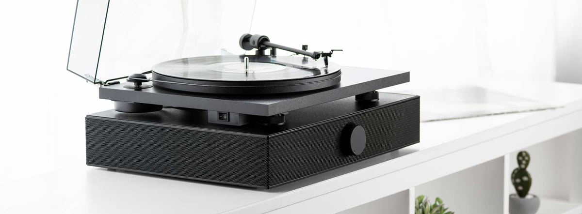 Dacă știi că pick-up-ul tău are un preamplificator de phono integrat sau plănuiești să achiziționezi un preamplificator de phono extern, opțiunile tale de boxe active se extind puțin mai mult. Dacă pick-up-ul tău are un preamplificator de phono integrat, va trebui doar să te asiguri că este activat și să conectezi cablurile RCA de la pick-up direct la intrările RCA de pe spatele boxei principale. Pentru pick-up-urile fără preamplificator de phono integrat, vei rula cablul RCA de la pick-up în intrarea preamplificatorului de phono, apoi un alt cablu RCA de la ieșirea preamplificatorului de phono în intrările RCA de pe spatele boxei principale. Excepția va fi când te conectezi la noile Sonos Era 100 și Era 300. Pentru acestea, va trebui să conectezi pick-up-ul la un adaptor RCA la 3,5mm, și apoi să folosești adaptorul Sonos Line-In pentru a conecta jackul de 3,5mm în intrarea USB-C de pe Sonos. Partea interesantă la Sonos este că odată ce ai pick-up-ul conectat la Era 100 sau Era 300, poți grupa aceste boxe cu orice alte boxe sau amplificatoare Sonos din sistemul tău pentru a permite redarea vinilului tău în mai multe camere sau zone din casă. Destul de tare! Avem, de asemenea, un articol mai detaliat despre cum să conectezi pick-up-ul la Sonos dacă vrei să afli mai multe despre asta.