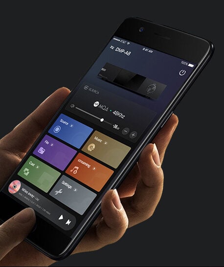 DMP-A8 are același design ca celelalte unități, dar este într-o carcasă puțin mai lată și mai adâncă, cu dimensiuni de aproximativ 38 cm lățime, 8,9 cm înălțime și 24,8 cm adâncime. Aceste dimensiuni mai mari se datorează componentelor diferite și intrărilor/ieșirilor pe care le oferă A8 în comparație cu A6 și A6 Master Edition, despre care vom discuta mai târziu. Totul despre design rămâne la fel ca celelalte unități, inclusiv ecranul tactil de 6 inch.