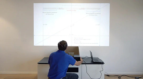 - Pentru ecranul de 120 de inci, va trebui ca spatele proiectorului să fie la 22 de inci de perete. Dacă mobilierul are picioare ajustabile, folosiți-le pentru a nivela mobilierul pe ambele părți.